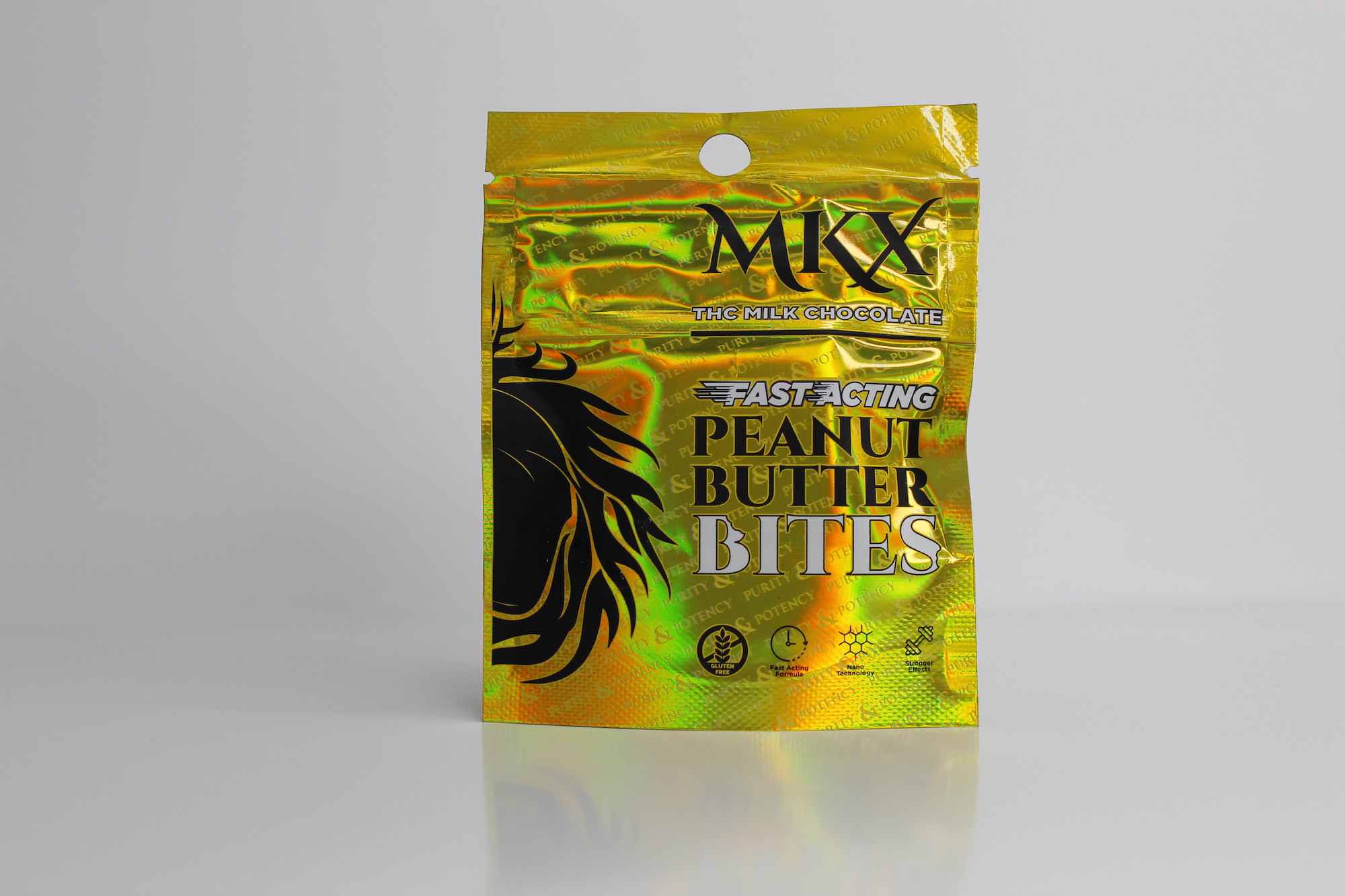 The perfect bite for the stoner who wants an immediate feeling of euphoria. Made with NaNoBlitz nanotechnology, a production method that makes you feel effects three times faster. Our nano-tech lets users experience a blissful high in 5-15 minutes on average. With two 50-milligram chocolates in each package, our product guarantees an exquisite feeling without having to watch the clock tick. When compared to a full-size chocolate bar, you get the same feeling while consuming only a fraction of the calories & sugar.